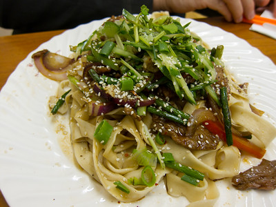 Blanda dressingen med dom kalla nudlarna och den tunt skivade flanksteken.